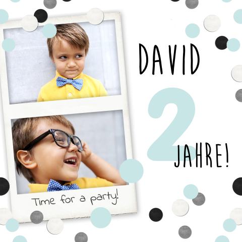Einladung 2 Geburtstag Mit Blauem Konfetti Und Fotostreifen